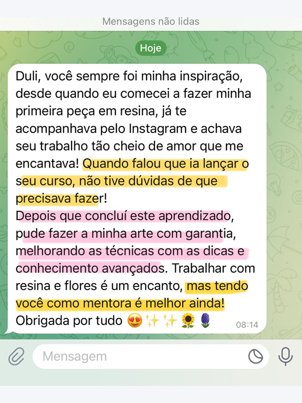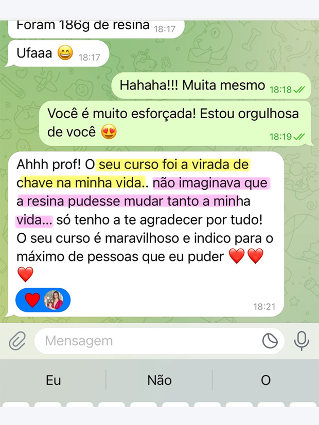 Me chama agora no WhatsApp que eu te explico tudo o que você precisa saber para ir com tudo nesse maravilhoso mundo da resina.