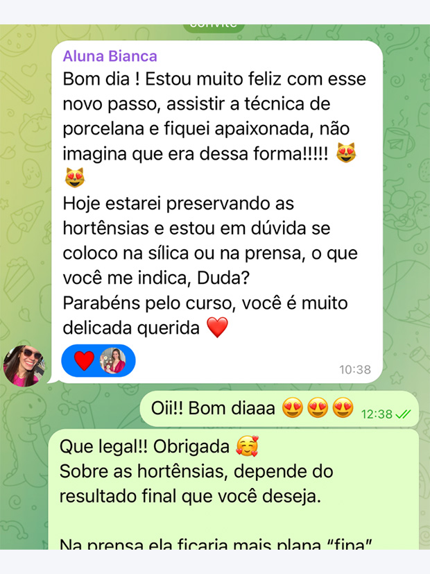 Grupo de apoio, para tirar duvidas e dividir conhecimentos com todas as alunas.