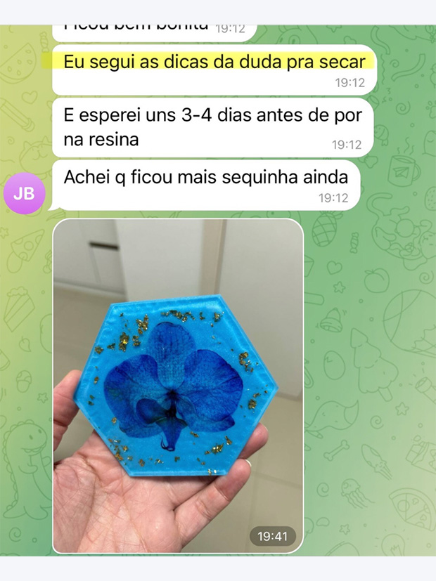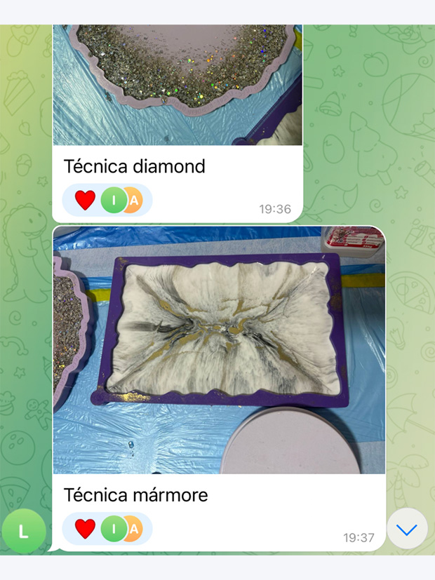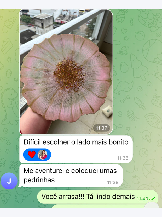Nesse tempo, não só aprimorei minhas habilidades artísticas, mas também transformei minha paixão em uma fonte de renda prazerosa e lucrativa. A resina epóxi não é apenas um meio de criar peças encantadoras, mas também uma oportunidade de compartilhar meu conhecimento e experiência.